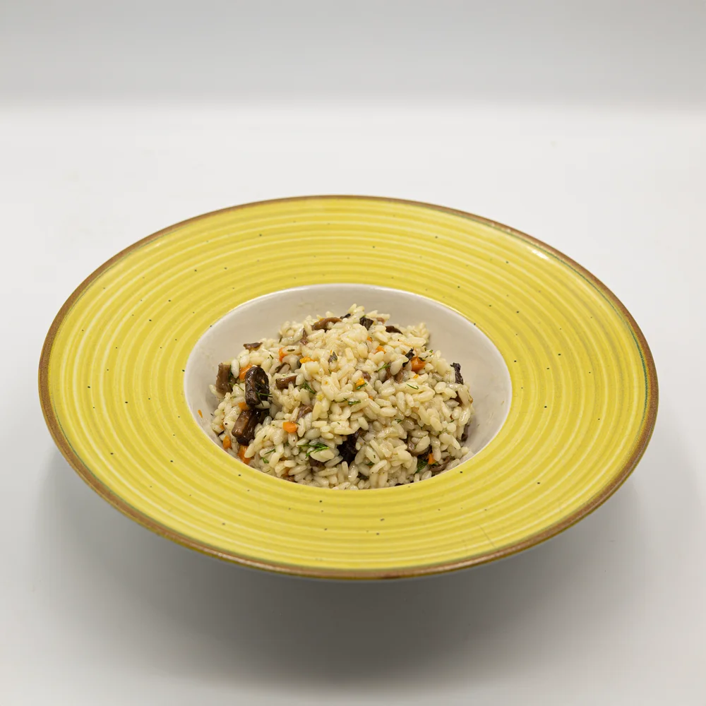 Ориз арборио, лук, морков, чесън, копър, диви гъби