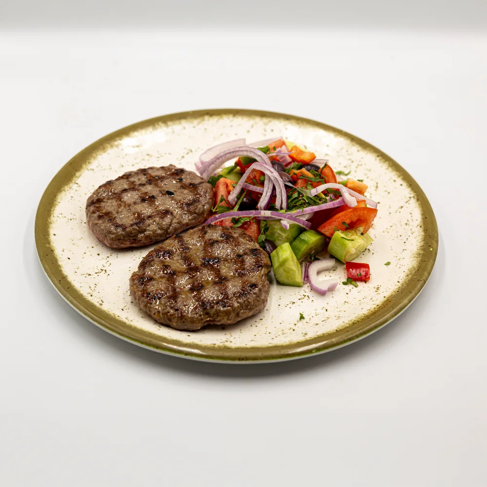 Телешки кюфтета 2 бр. на BBQ  с пресни зеленчуци